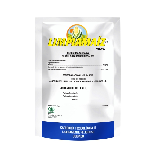 LIMPIAMAIZ® 90 WG, es un herbicida para el control de malezas en maíz. Es absorbido principalmente por las raíces pero también por las hojas de las malezas, inhibiendo la fotosíntesis y controlando principalmente malezas dicotiledóneas (hoja ancha) y algunas gramíneas (monocotiledóneas).